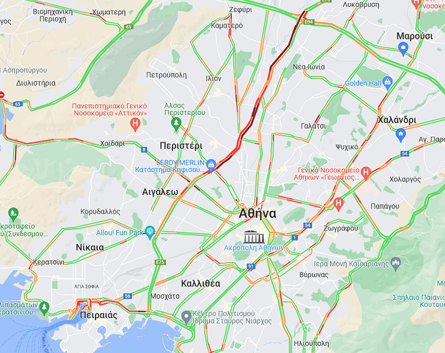 Δείτε τον χάρτη με την κίνηση τώρα στους δρόμους…