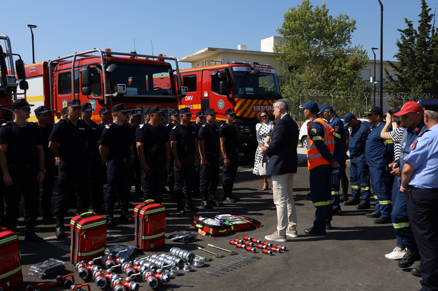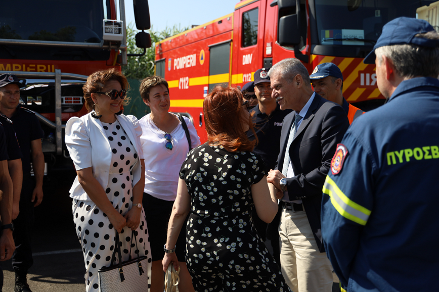 Τους πυροσβέστες υποδέχθηκε ο υφυπουργός Κλιματικής Κρίσης και Πολιτικής Προστασίας, Ευάγγελος Τουρνάς, ενώ στην εκδήλωση που πραγματοποιήθηκε στις εγκαταστάσεις του Κέντρου Εκπαίδευσης του Πυροσβεστικού Σώματος – ΙΣΝ στη Νέα Μάκρη, το «παρών» έδωσαν η πρέσβης της Ρουμανίας στην Ελλάδα, Ανδριάννα Σιαμπά και ο αρχηγός του Πυροσβεστικού Σώματος, αντιστράτηγος Γιώργος Πουρναράς.