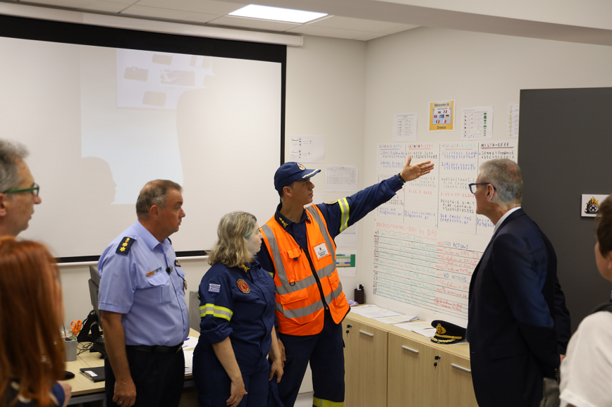 Στο πλαίσιο της εκδήλωσης, πραγματοποιήθηκε παράδοση-παραλαβή πυροσβεστικού εξοπλισμού και μέσων ατομικής προστασίας που χρηματοδοτεί η ΕΕ. Ακολούθησε ξενάγηση στο χώρο του Liaison Officer Coordination Cell και παρουσίαση του φετινού προγράμματος προ-εγκατάστασης από τον αντιπύραρχο Βασίλειο Μπίκα, συντονιστή των Συνδέσμων Αξιωματικών Ξένων Αποστολών, στο περιθώριο της οποίας ο κ. Τουρνάς είχε την ευκαιρία να συζητήσει με την πρέσβη της Ρουμανίας τρόπους περαιτέρω εμβάθυνσης της συνεργασίας Ελλάδας και Ρουμανίας στο πεδίο της πολιτικής προστασίας.