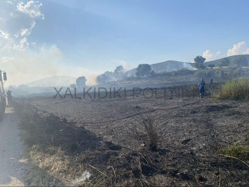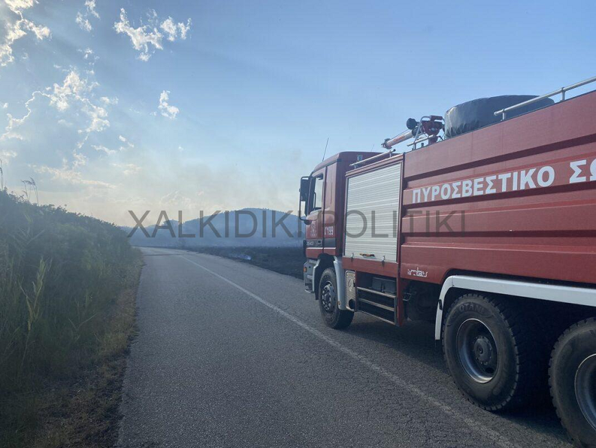 Σύμφωνα με το xalkidikipolitiki.com, η πυρκαγιά καίει χορτολιβαδική έκταση και βρίσκεται υπό μερικό έλεγχο, ενώ δίνεται μάχη για να μην περάσει στο βουνό.
