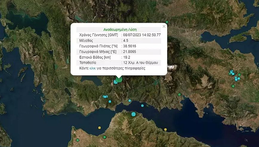 Σεισμός 4,5 Ρίχτερ σημειώθηκε λίγο μετά τις 17.00 στο Θέρμο της Αιτωλοακαρνανίας.