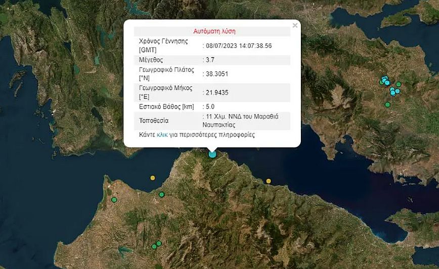 Με ελάχιστη διαφορά ώρας, στις 17.07, σημειώθηκε και δεύτερος σεισμός 3,7 Ρίχτερ, 11 χιλιόμετρα νότια – νοτιοδυτικά από τον Μαραθιά Ναυπακτίας με εστιακό βάθος 5 χιλιόμετρα.