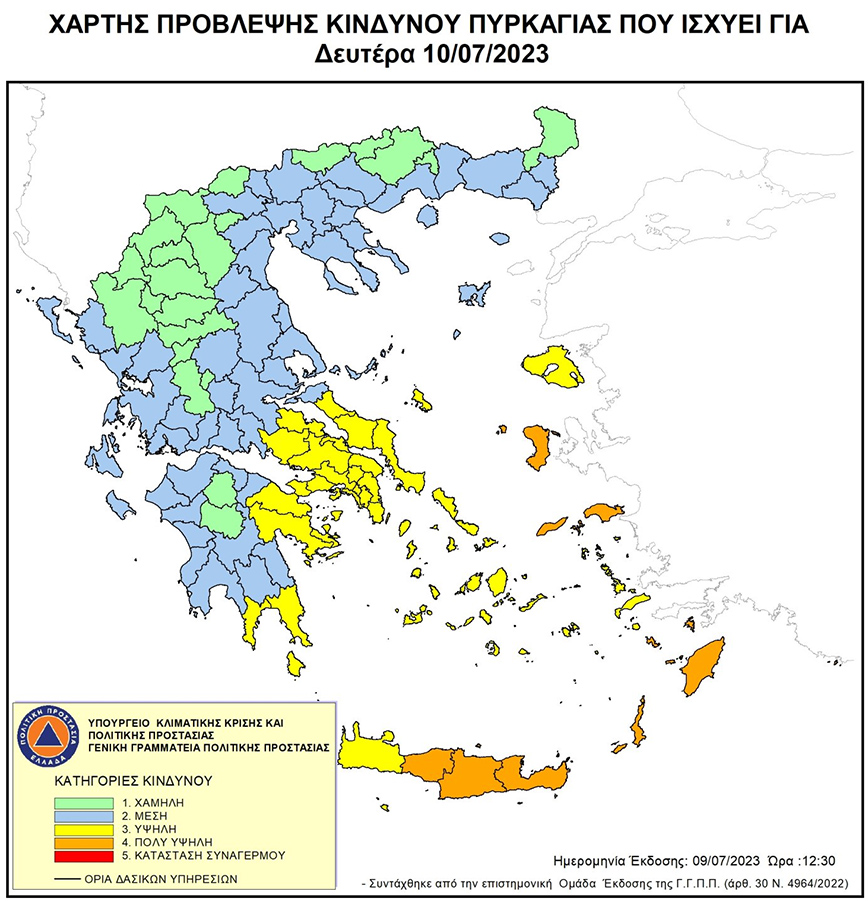 Ο χάρτης πρόβλεψης κινδύνου πυρκαγιάς για σήμερα, Δευτέρα 10/7