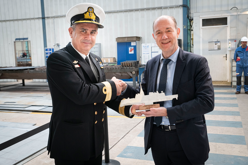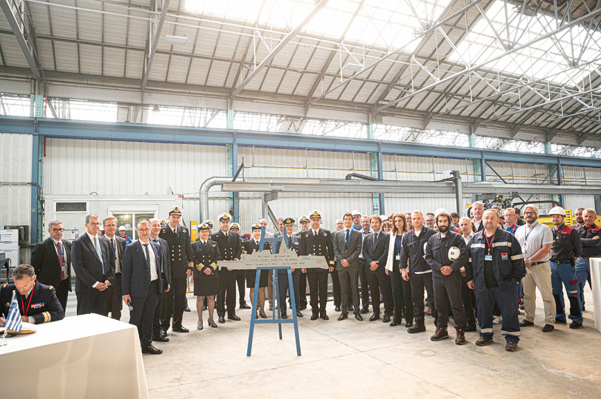Μάλιστα, έγινε τελετή κοπής του πρώτου μεταλλικού ελάσματος από την φρεγάτα FDI HN ΦΟΡΜΙΩΝ.