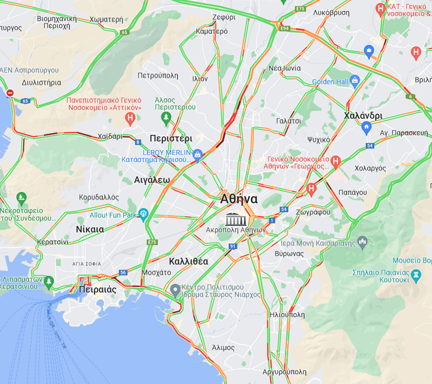 Σύμφωνα με την Τροχαία Αττικής, αυξημένη είναι η κίνηση τώρα στα εξής σημεία:
