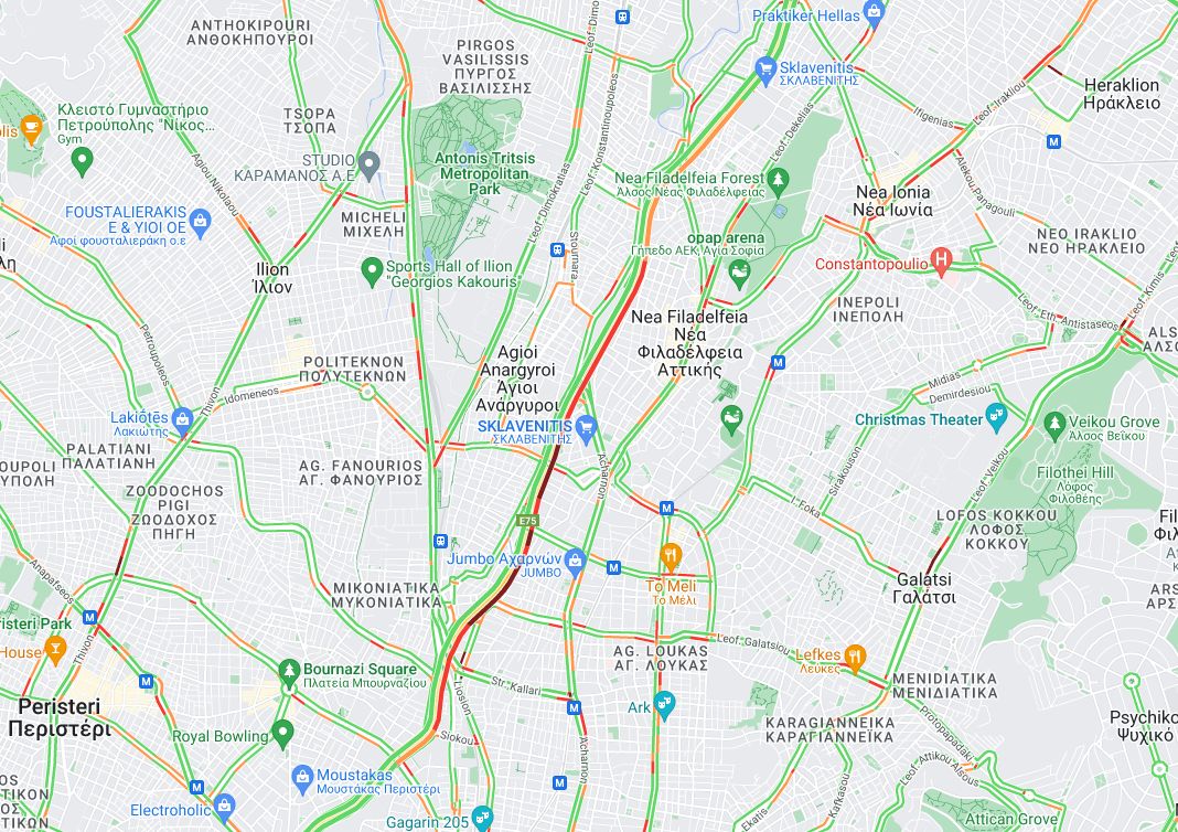 Πρόβλημα παρατηρείται στην κυκλοφορία στην άνοδο της Κηφισού, από τη Ροσινιόλ προς τη Νέα Φιλαδέλφεια, στη λεωφόρο Βεΐκου στο Γαλάτσι και στην έξοδο της Αττικής Οδού προς τη Λαμία.