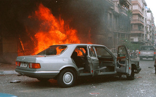 Ένας εξαιρετικά δυνατός θόρυβος «έσπασε» την ηρεμία που επικρατούσε και αμέσως μετά σκόνη και φωτιές κάλυψαν το μεγαλύτερο μέρος της περιοχής. Ο υπουργός και όσοι ήταν μέσα στο αυτοκίνητο βγήκαν αποσβολωμένοι προσπαθώντας να καταλάβουν τι έχει συμβεί.