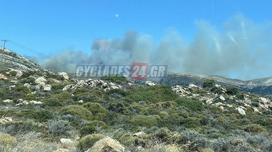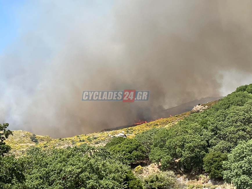 Ενισχύονται οι δυνάμεις της Πυροσβεστικής που επιχειρούν για την κατάσβεση της φωτιάς στη Νάξο, με πυροσβέστες να φτάνουν στο νησί από τη Σύρο, τη στιγμή που βοηθούν και εθελοντές.