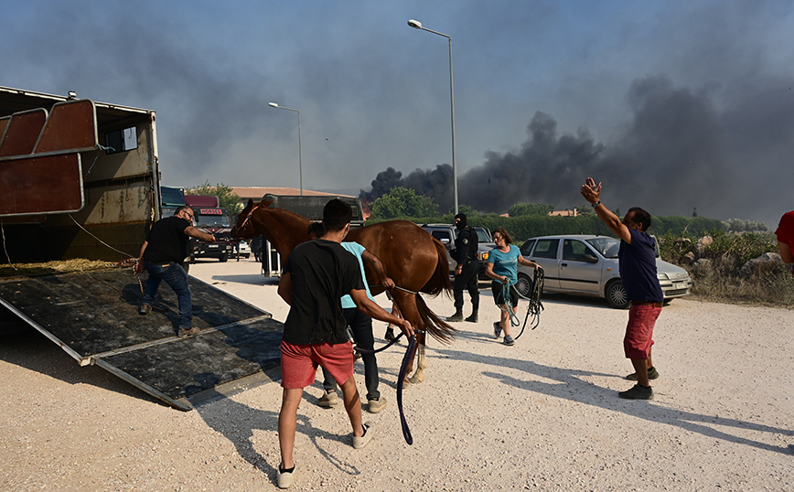 Η φωτιά που μαίνεται στον Κουβαρά Αττική έφτασε και στον Ιππικό Όμιλο της Αναβύσσου. 15 άλογα βρισκόντουσαν εγκλωβισμένα και έντρομα ένιωθαν τις φλόγες να πλησιάζουν. Άνθρωποι που βρέθηκαν στο σημείο, άνοιξαν τις πόρτες των στάβλων προκειμένου να βγουν έξω τα φοβισμένα ζώα ενώ οι ίδιοι καταβάλλοντας υπεράνθρωπες προσπάθειες προσπαθούσαν να σβήσουν τις εστίες που απειλούσαν τα άλογα.