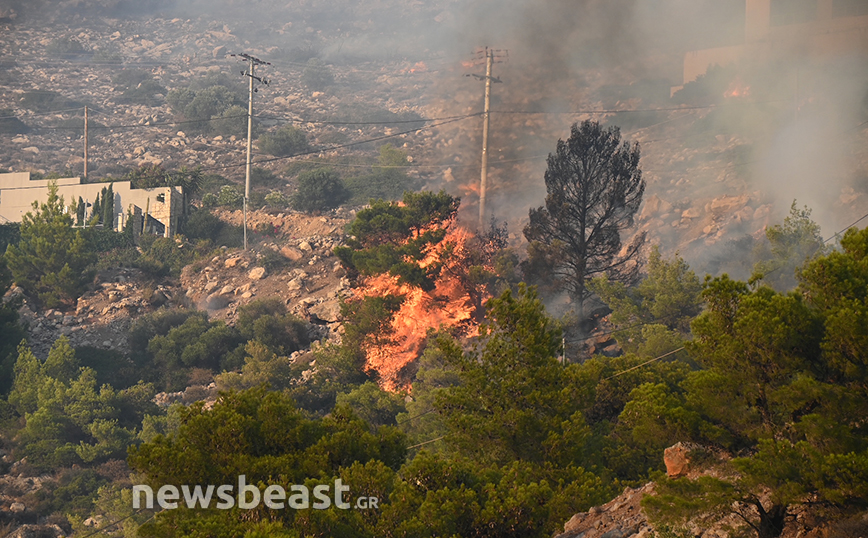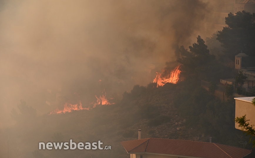 Η μάχη από τις πυροσβεστικές δυνάμεις στην περιοχή δίνεται πλέον αυλή την αυλή, σπίτι το σπίτι, ενώ μέχρι τις 21:00 θα συνεχίσουν να επιχειρούν τα εναέρια μέσα, 16 επιχειρησιακά και 1 συντονιστικό.