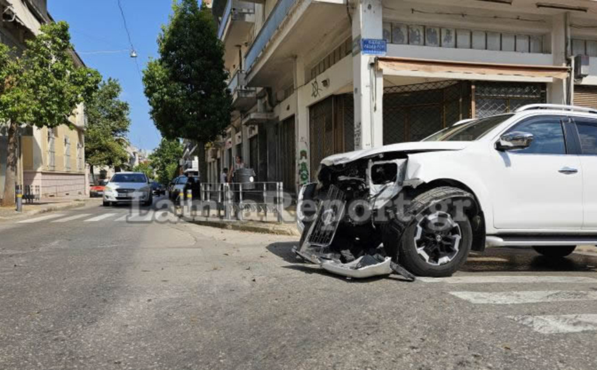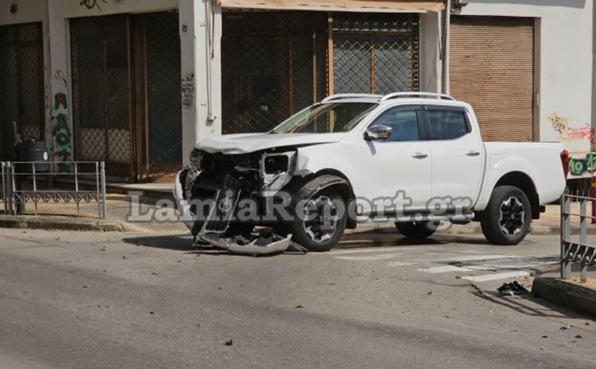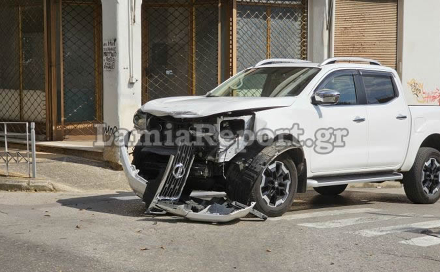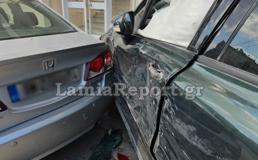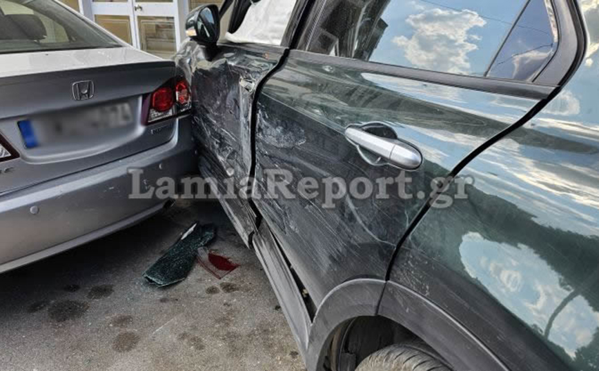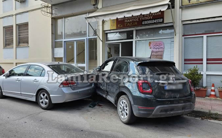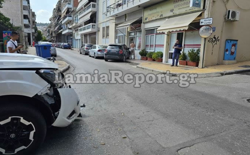 Τροχαίο σημειώθηκε λίγο μετά τις 16:00 το απόγευμα στη συμβολη των οδών Όθωνος και Λεβαδίτου, στη Λαμία. Ο οδηγός του λευκού αγροτικού παραβίασε το STOP ανεβαίνοντας την οδό Λεβαδίτου και «εμβόλισε» ένα Fiat, ο οδηγός του οποίου κινούταν επί της οδού Όθωνος. Μετά τη σύγκρουση το Fiat ανεξέλεγκτο χτύπησε ένα άλλο παρκαρισμένο αυτοκίνητό και στη συνέχεια «καρφώθηκε» στη βιτρίνα καταστήματος.