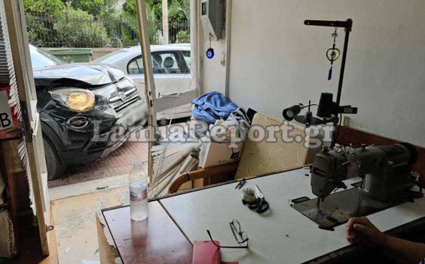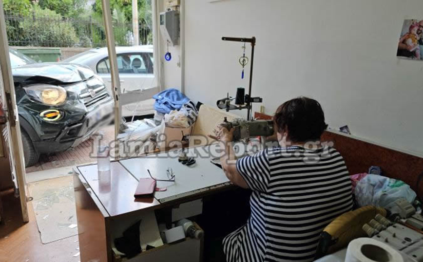 Εκείνη την ώρα μέσα στο κατάστημα ήταν η ιδιοκτήτρια και εργαζόταν σκυμμένη πάνω στη ραπτομηχανή. Είναι θαύμα που δεν την τραυμάτισε κάποιο από τα γυαλιά της τζαμαρίας που έγινε θρύψαλα. «Δούλευα μέσα στο μαγαζί. Ακούω ένα μπαμ και αμέσως μετά βλέπω το αυτοκίνητο να πέφτει πάνω στη βιτρίνα μας….», είπε η ιδιοκτήτρια στο LamiaReport.