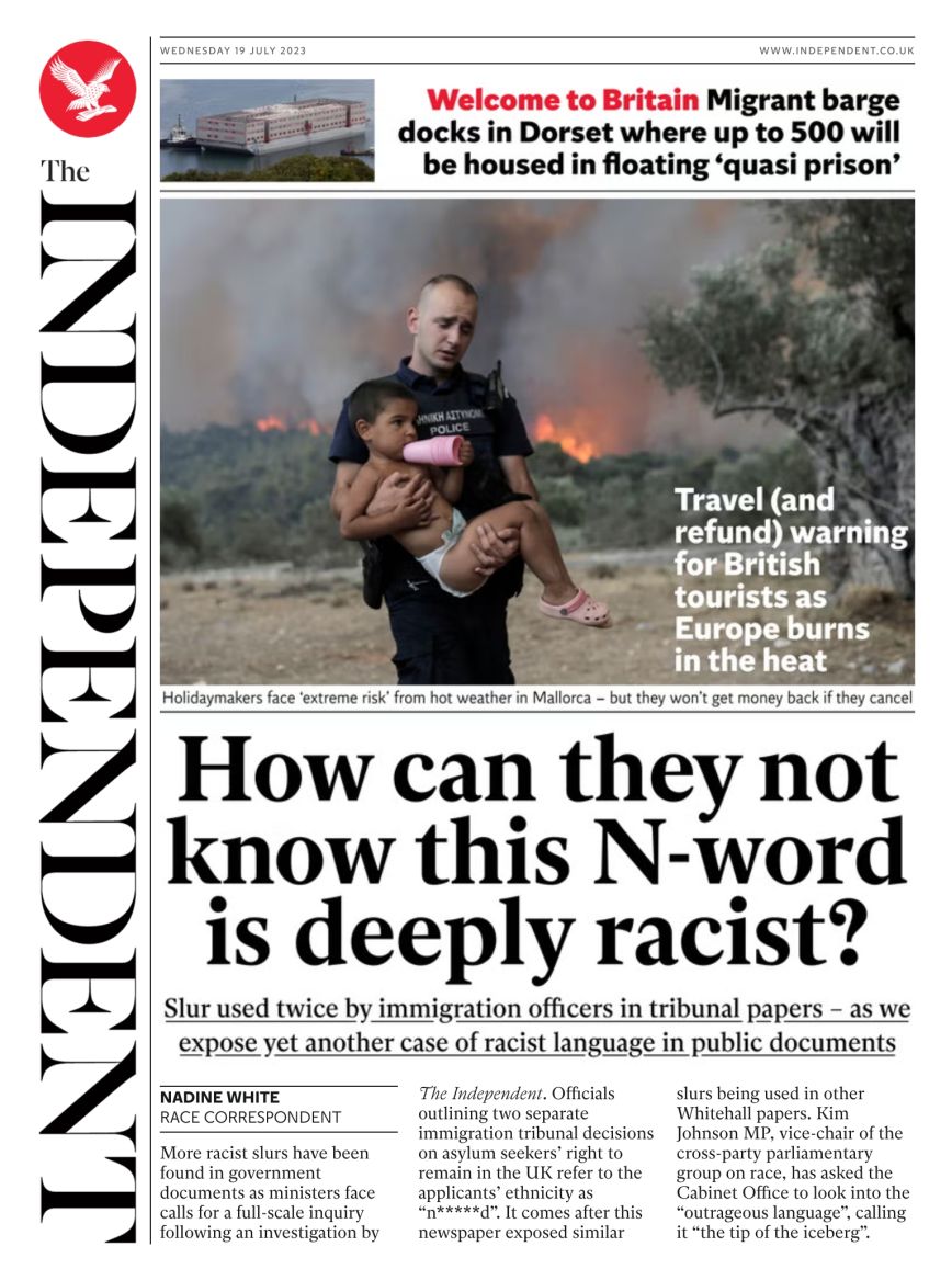 Την ίδια φωτογραφία φιλοξενεί στο πρωτοσέλιδό του και ο βρετανικός Independent.