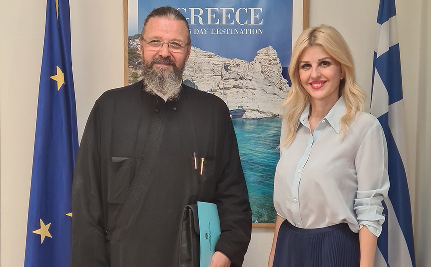 Την πρώτη συνάντηση εργασίας με την Υφυπουργό Τουρισμού, αρμόδια επί των θεμάτων του Θρησκευτικού και Προσκυνητικού Τουρισμού, κυρία Έλενα Ράπτη είχε σήμερα στο Υπουργείο Τουρισμού, ο αρχιμανδρίτης Σπυρίδων Κατραμάδος, της Διοικούσης Επιτροπής του Συνοδικού Γραφείου Προσκυνηματικών Περιηγήσεων της Εκκλησίας της Ελλάδος.