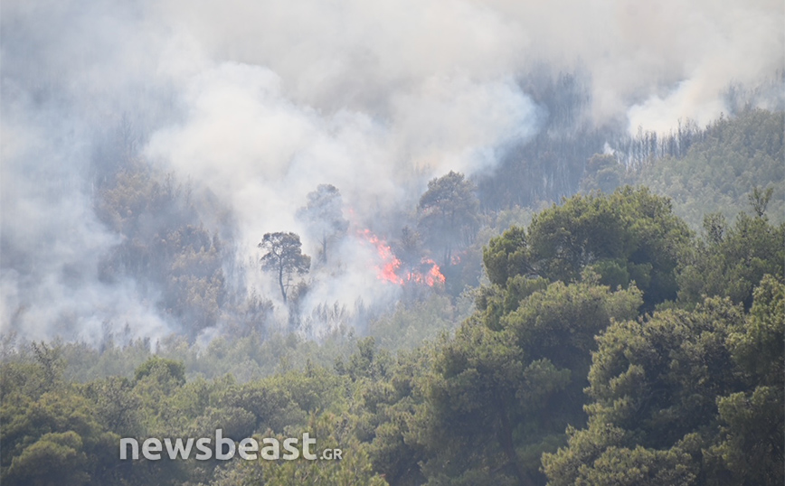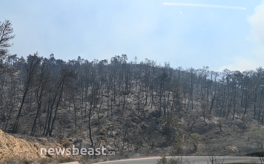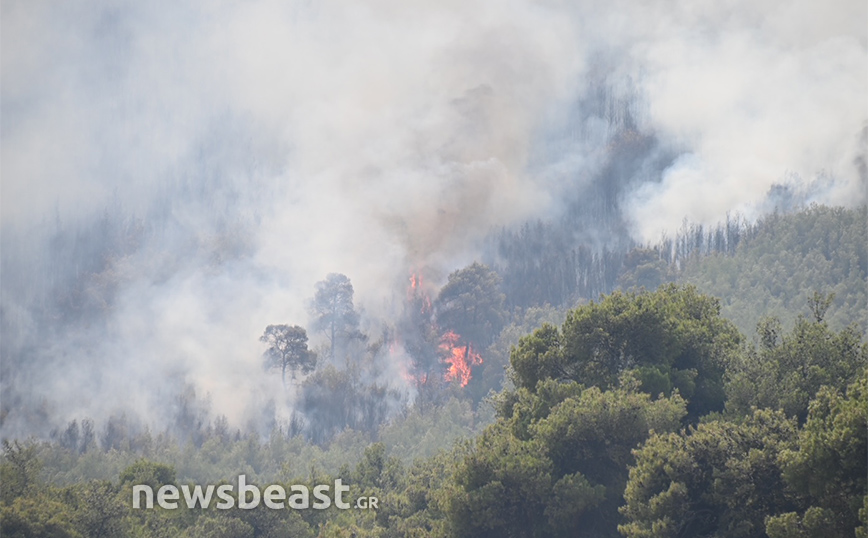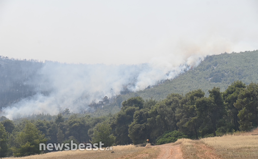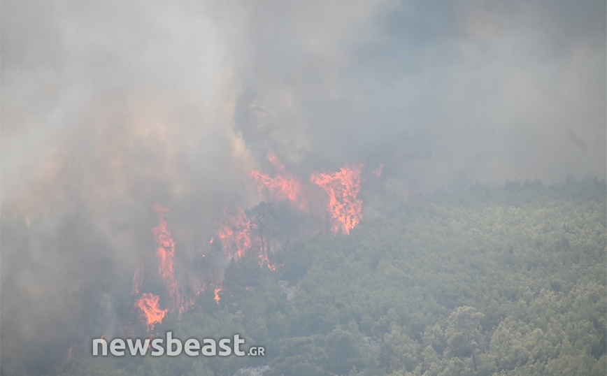 Η εικόνα είναι δύσκολη και υπάρχει ισχυρός άνεμος στην περιοχή. Γίνεται προσπάθεια από την Αστυνομία να αποκλειστούν δρόμοι και να απομακρυνθούν όσοι είχαν μείνει πίσω, αλλά και από τους πυροσβέστες για να μην φτάσει εκεί η φωτιά.