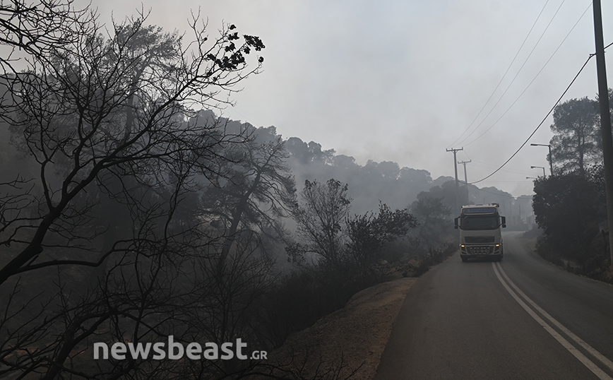 Την πορεία της φωτιάς, όπως αυτή αποτυπώνεται στην επαρχιακή οδό Οινόης – Μαγούλας, στην κάθοδο από Στεφάνι καταγράφει η κάμερα του Newsbeast μέσα από αυτοκίνητο.
