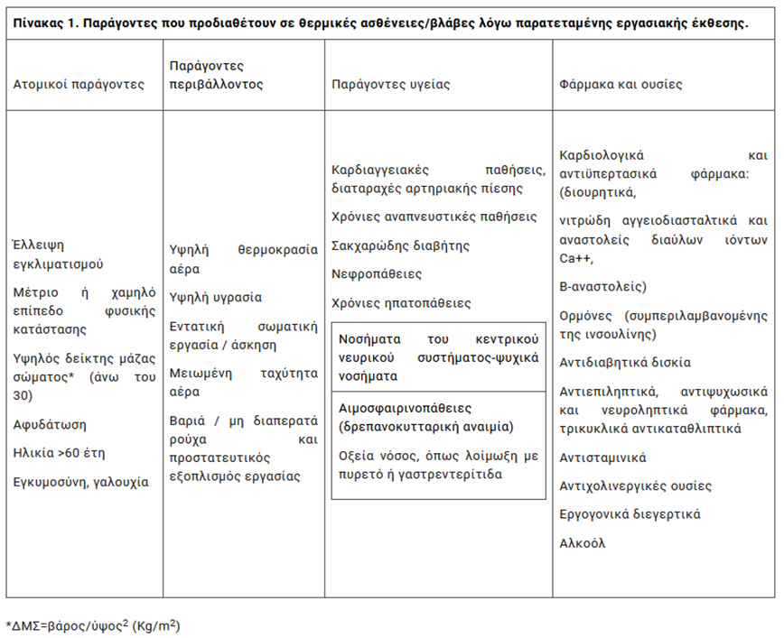 Τέλος συστήνεται η συχνή παραπομπή των εργοδοτών στην ιστοσελίδα της ΕΜΥ όπου υπάρχει 48ωρη πρόβλεψη του σχετικού βιοκλιματικού δείκτη πρόβλεψης (WBGT) της θερμικής καταπόνησης των εργαζομένων, η οποία θα πρέπει να λαμβάνεται σοβαρά υπόψη κατά τον προγραμματισμό των εργασιών ή/και των τεχνικών και οργανωτικών μέτρων για την αποτροπή της θερμικής καταπόνησης των εργαζομένων.