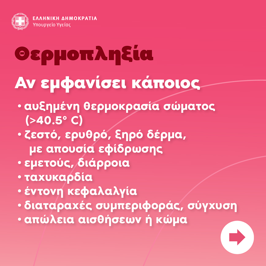 Το υπουργείο Υγείας προειδοποιεί τους πολίτες για τη ζέστη, με αποτέλεσμα να εκδώσει αναλυτικές οδηγίες, τόσο για τα συμπτώματα που μπορεί να προκαλέσουν οι υψηλές θερμοκρασίες, όσο και με τον τρόπο που μπορεί κάποιος να παρέχει τις πρώτες βοήθειες.