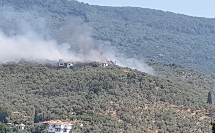Στη φωτιά που κατακαίει ελαιόδεντρα και θάμνους σπεύδουν και εναέρια μέσα πυρόσβεσης για να βοηθήσουν τις επίγειες δυνάμεις, που ενισχύονται συνεχώς από τον Βόλο.