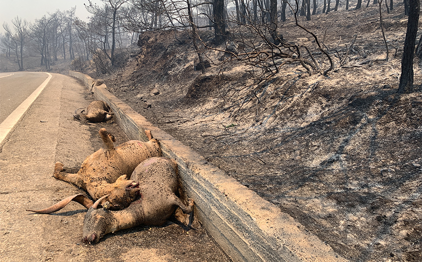 Αρκετά από τα ελάφια που διαβιούν στο νησί της Ρόδου και βρίσκονταν στη δασική περιοχή όπου εκδηλώθηκε και συνεχίζεται η πυρκαγιά έχουν χάσει τη ζωή τους, σύμφωνα με τις εκτιμήσεις των πυροσβεστών και των εθελοντών που βρίσκονται στο μέτωπο της φωτιάς.