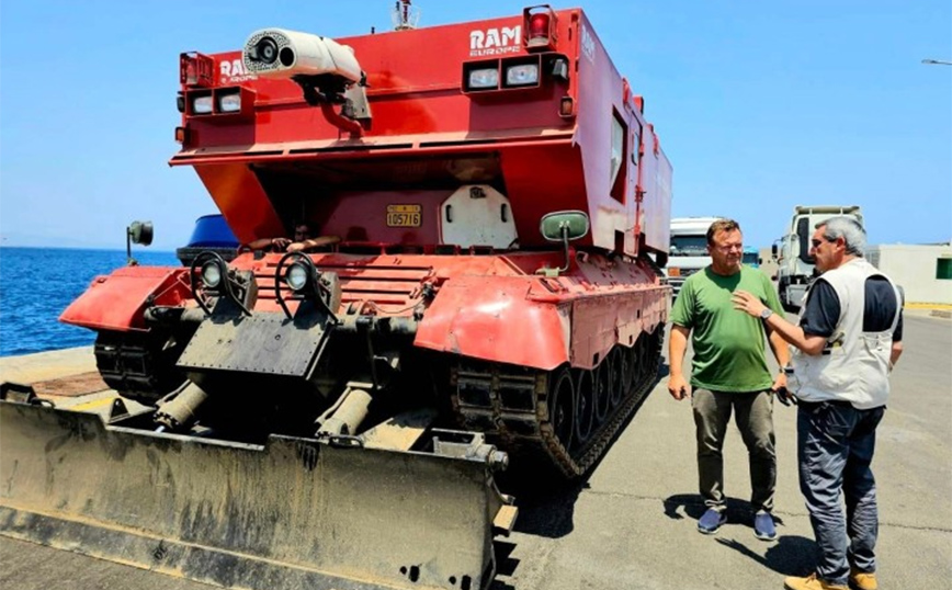 Το ερπυστριοφόρο είναι στη διάθεση των αρχών και θα τεθεί άμεσα εκεί όπου υπάρχει ανάγκη, σε συνεργασία με εξειδικευμένο προσωπικό που διέθεσε η εταιρεία μας και στελεχώνει το πλήρωμά του».