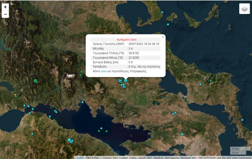 Σεισμός σημειώθηκε πριν λίγα λεπτά στην περιοχή της Αταλάντης. Η σεισμική δόνηση, σύμφωνα με το Γεωδυναμικό Ινστιτούτο ήταν μεγέθους 3,4 βαθμών της κλίμακας Ρίχτερ.