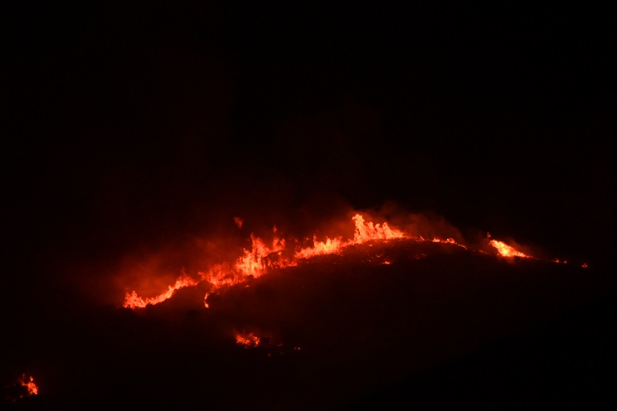 Ο δυνατός αέρας επιδεινώνει την κατάσταση. H φωτιά έχει φθάσει στα όρια του χωριού, σε ύψωμα και σε απόσταση 100 περίπου μέτρων από τα πρώτα σπίτια.