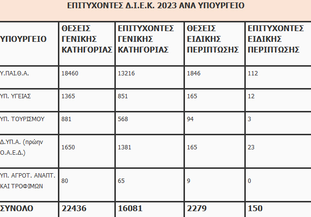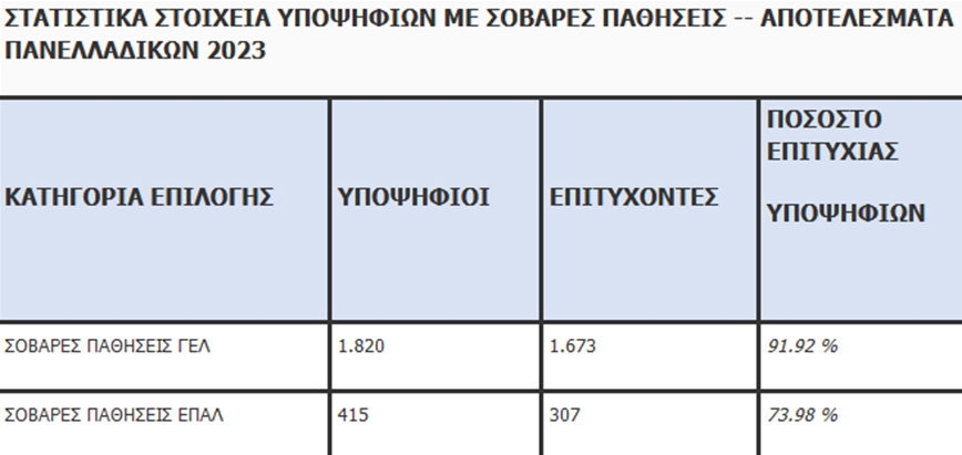 Δείτε τους πίνακες που έδωσε στη δημοσιότητα το υπουργείο Παιδείας…