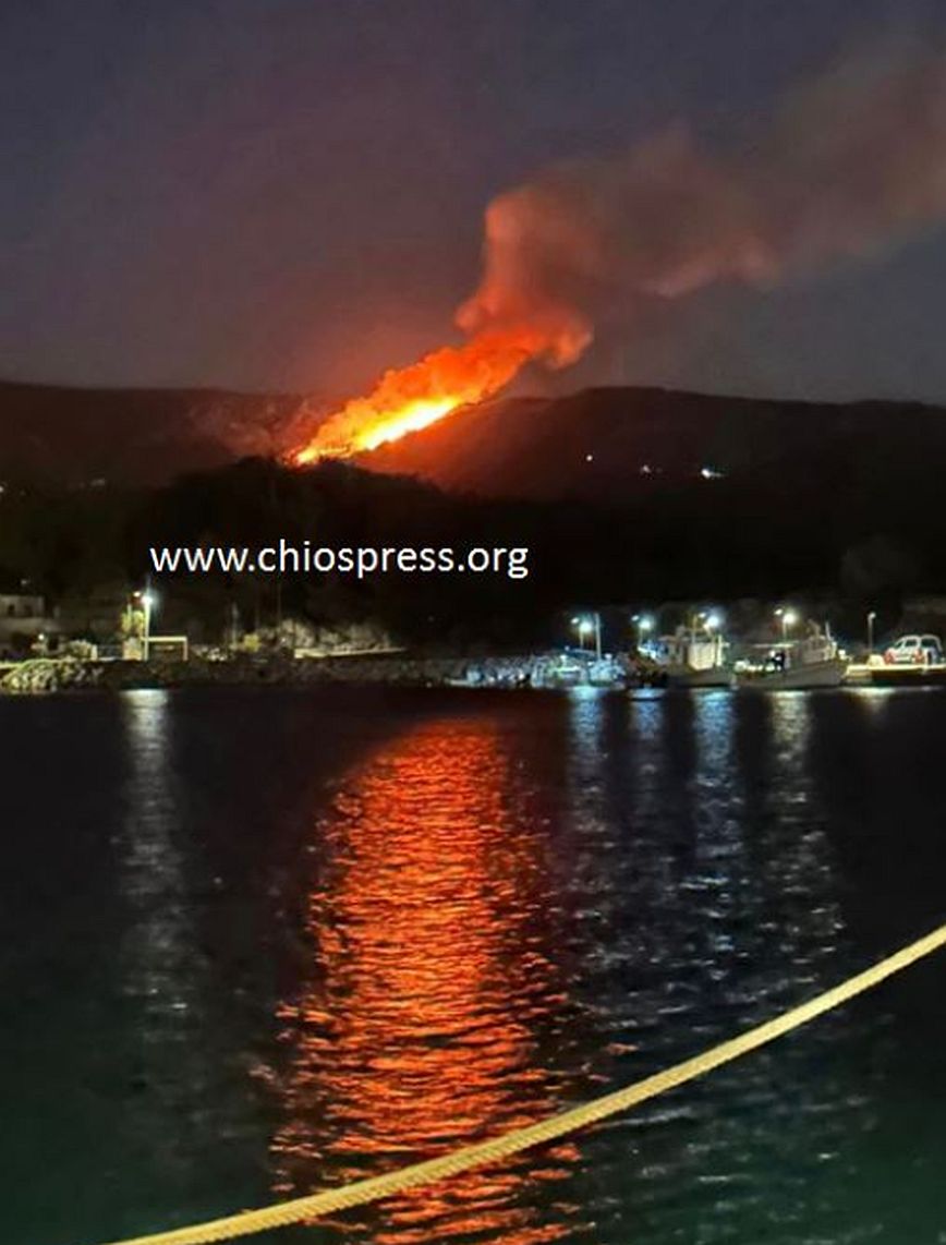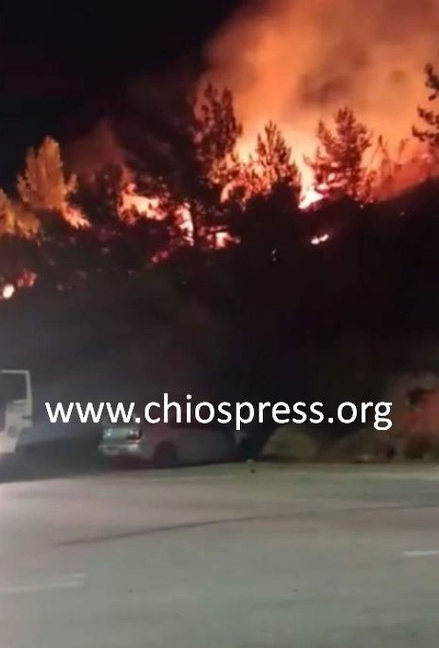 Πυρκαγιά ξέσπασε το βράδυ της Κυριακής 30 Ιουλίου σε δασική έκταση, στο χωριό Διευχά στη Χίο.