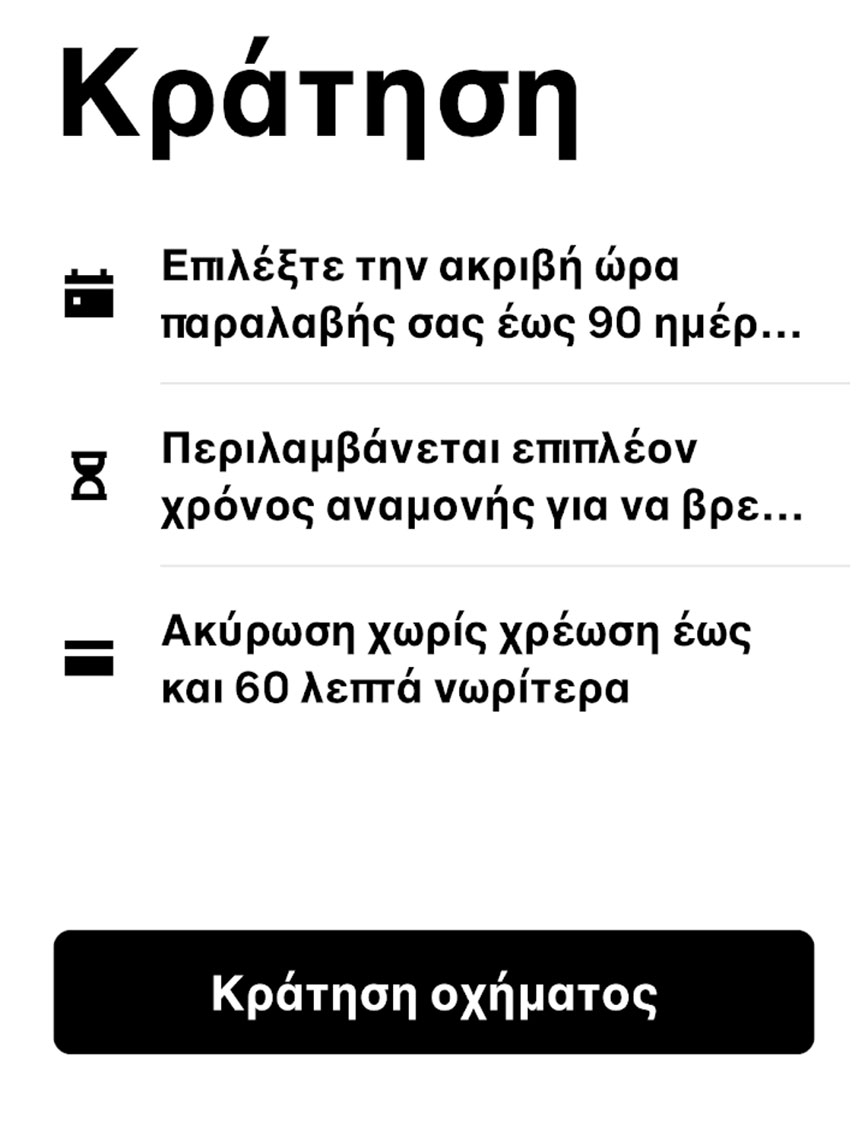 – Κάντε κράτηση καθορίζοντας την ημερομηνία, την ώρα και πού θέλετε να πάτε