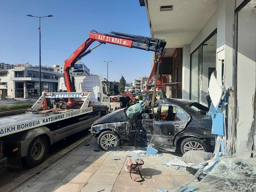 Το απίστευτο τροχαίο σημειώθηκε στο καθοδικό ρεύμα της Λεωφόρου Κηφισίας, στο ύψος του Αμαρουσίου, όπου -ευτυχώς- λόγω της ημέρας ήταν κλειστό το κατάστημα και διέρχονταν από το σημείο άλλα οχήματα ή πεζοί.