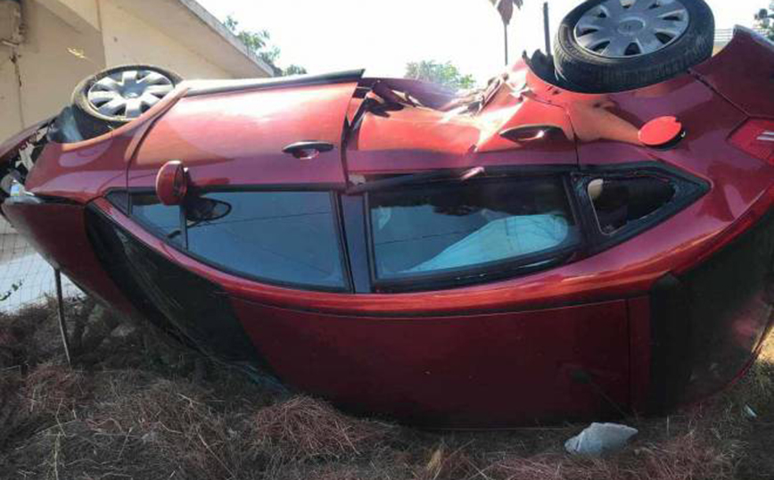 Οι επιβαίνοντες βγήκαν ευτυχώς σώοι από το εσωτερικό του αυτοκινήτου χωρίς να σημειωθεί τραυματισμός.