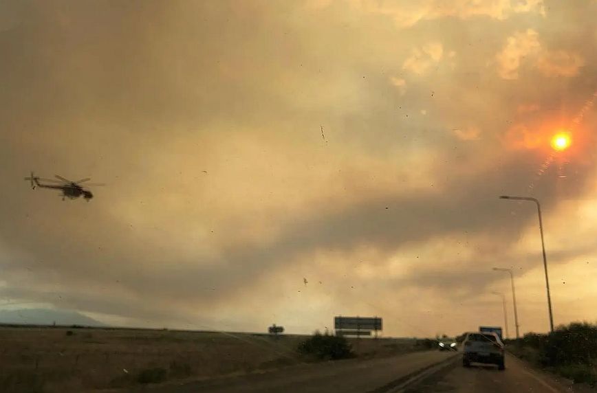 Η πυρκαγιά πέρασε το μεσημέρι την Εγνατία Οδό, όπου είχε διακοπεί από νωρίς η κυκλοφορία και κατευθύνεται νοτιοδυτικά, καθώς, όπως έγινε γνωστό από την Πυροσβεστική, πνέουν βορειοανατολικοί άνεμοι 6-7 μποφόρ.