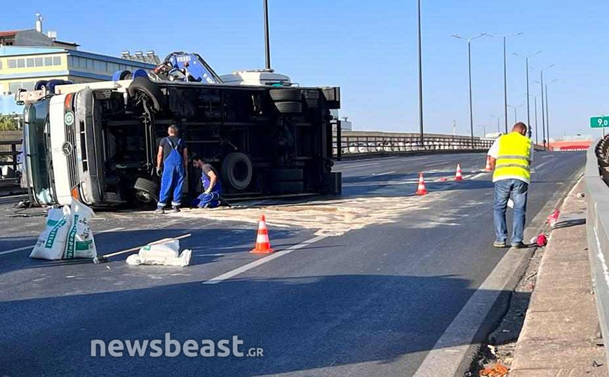 Το φορτηγό μετέφερε ψωμιά του τοστ και ο οδηγός μεταφέρθηκε ελαφρά τραυματίας στο νοσοκομείο «Γ. Γεννηματάς».