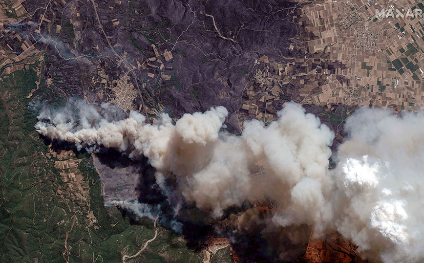Χαρακτηριστικές είναι οι φωτογραφίες από δορυφόρο του Ινστιτούτου Maxar των ΗΠΑ, το οποίο ειδικεύεται στην παρατήρηση της γης με δορυφόρους, μεταξύ άλλων υπηρεσιών, οι οποίες αποκαλύπτουν το μέγεθος αυτού του εφιάλτη.