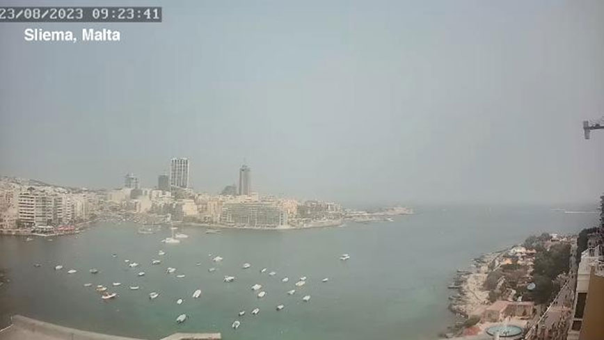 Ακολουθεί εικόνα από την κάμερα καιρού στην Σλιέμα της Μάλτας, όπου διακρίνεται η περιορισμένη ορατότητα στο λιμάνι της πόλης.