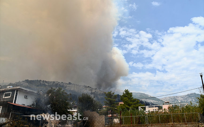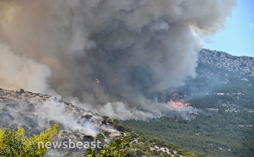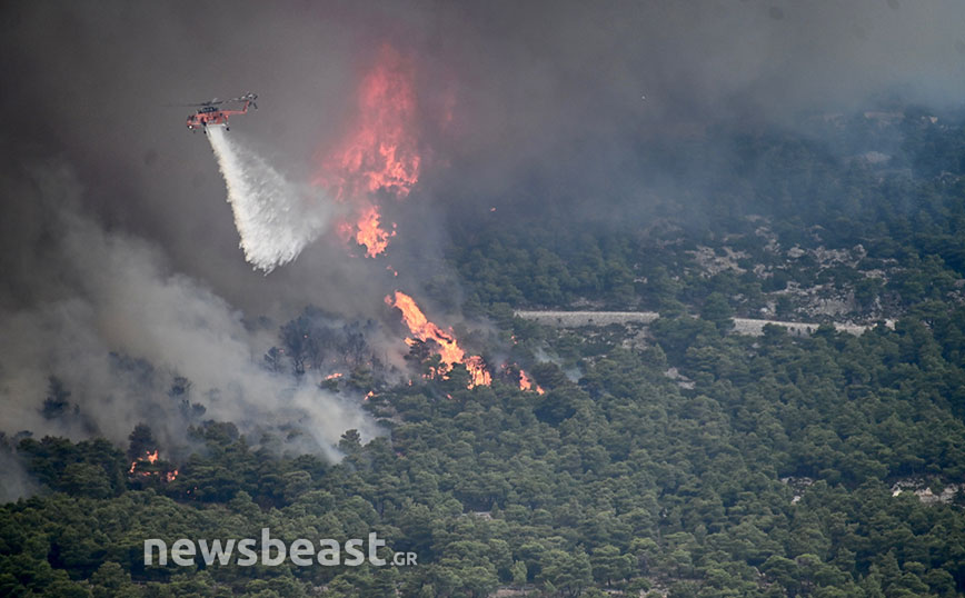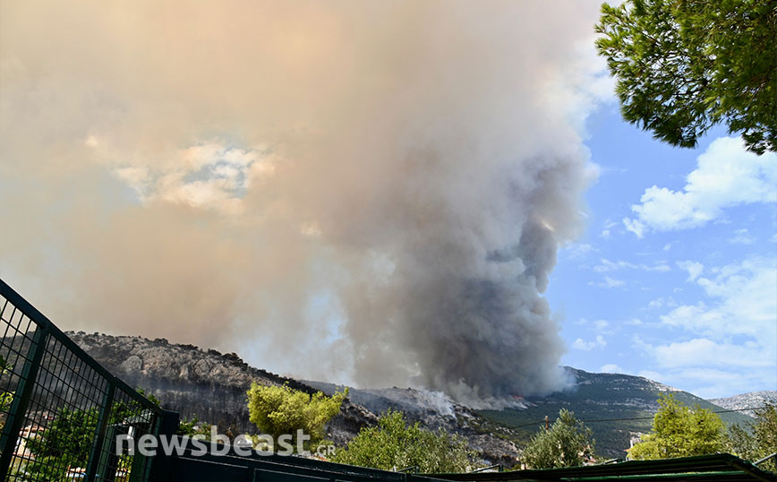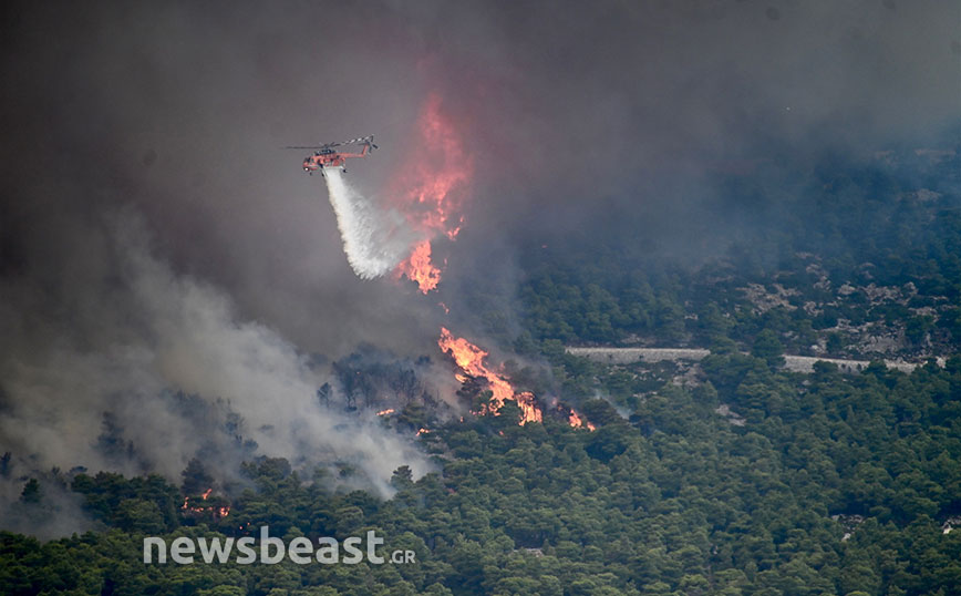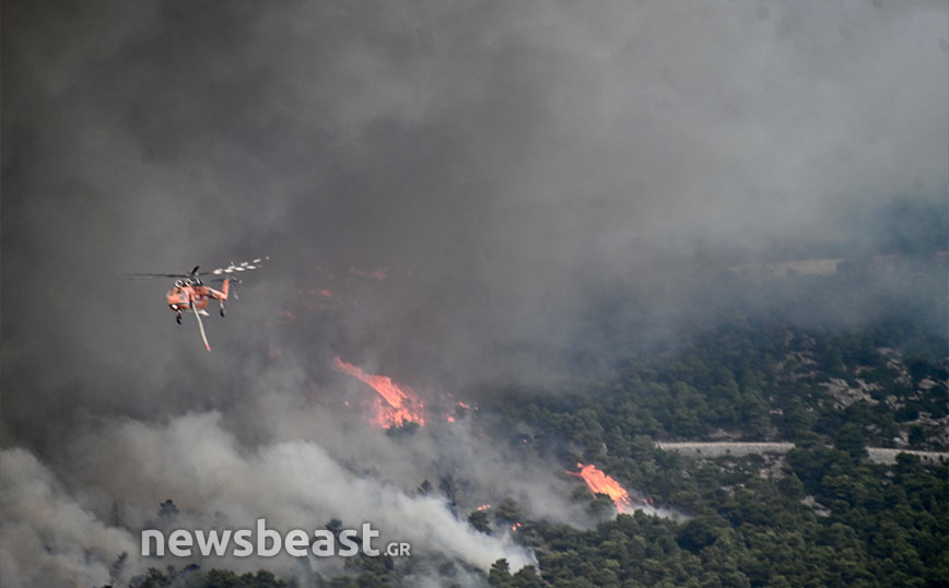 Οι πυροσβεστικές δυνάμεις δίνουν μάχη για να ανακοπεί αυτή η πορεία υπό εξαιρετικά δύσκολες συνθήκες.