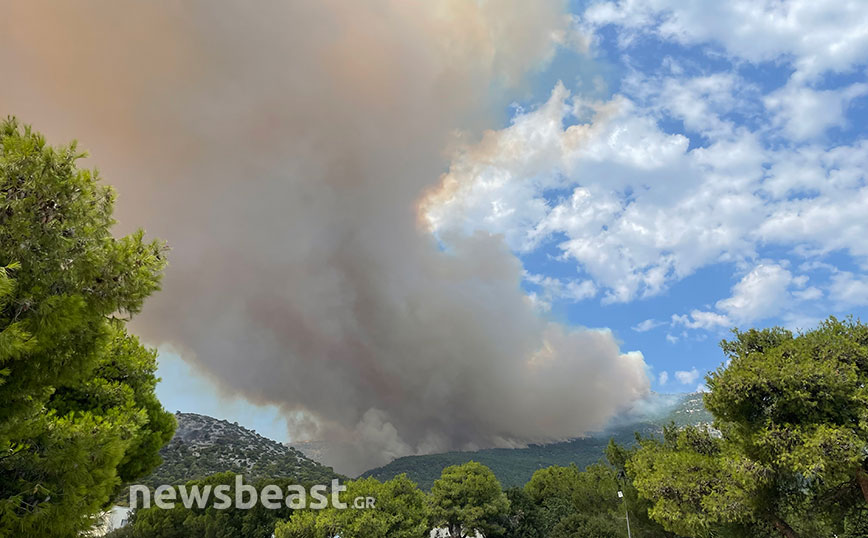 Εκτός ελέγχου είναι η φωτιά στους πρόποδες της Πάρνηθας, καθώς πλέον έχει φτάσει στο άκαυτο σημείο που ξεκινάει ο Εθνικός Δρυμός και ανεβαίνει προς τα πάνω. Σύμφωνα με πληροφορίες, η φωτιά μπήκε στην Πάρνηθα από τα πυροφυλάκια της Αγίας Παρασκευής με κατεύθυνση το παλιό σανατόριο.