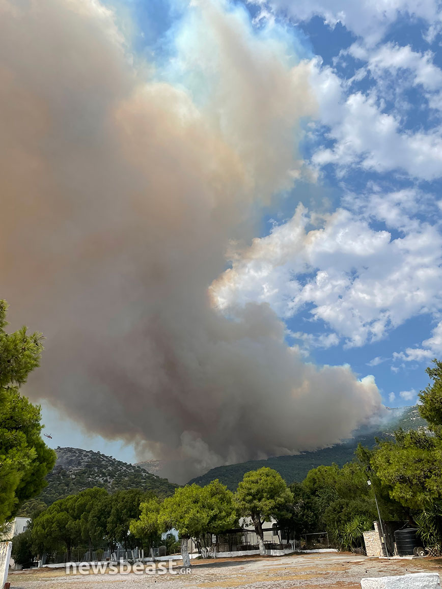 Αναφορικά με το στρατόπεδο Καποτά, που βρίσκεται στην περιοχή, σύμφωνα με την Πυροσβεστική δεν διατρέχει άμεσο κίνδυνο καθώς η πυρκαγιά κινήθηκε βορειότερα.