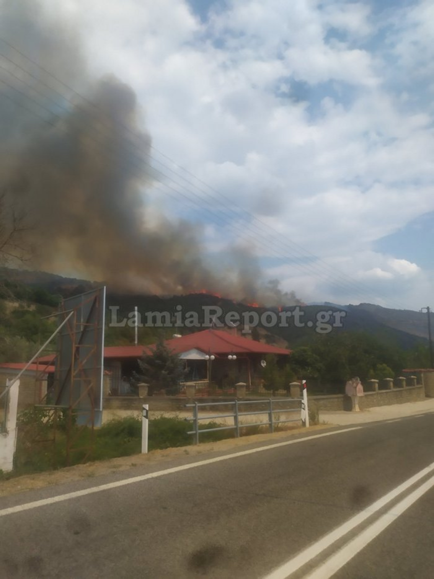 Σύμφωνα με το lamiareport.gr η πυρκαγιά μαίνεται σε κομμάτι που είχε σωθεί στη μεγάλη πυρκαγιά της περασμένης Τρίτης (22/8).