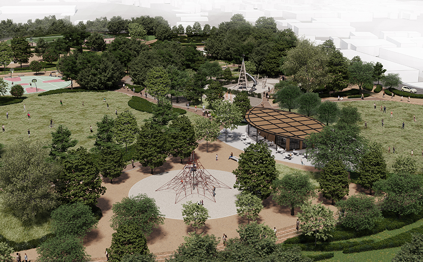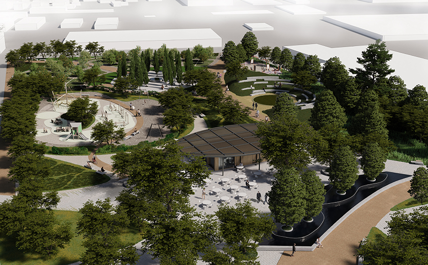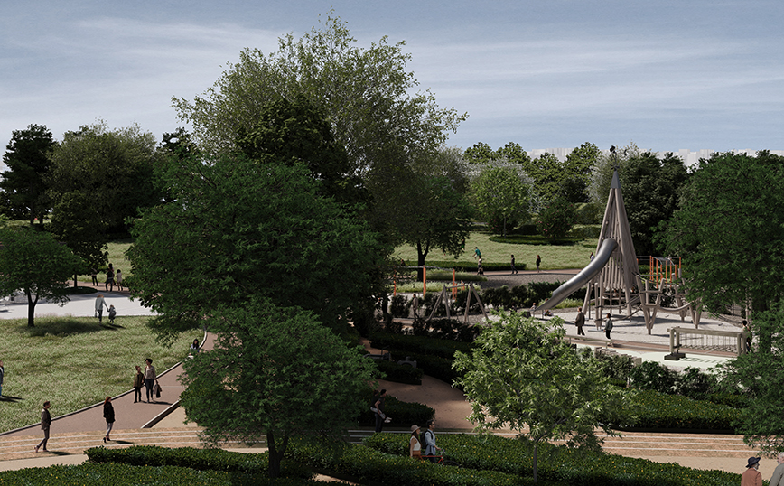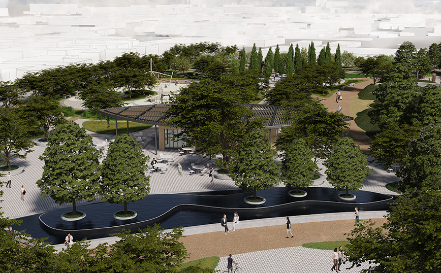 3.563 νέα δέντρα, 102.000 θάμνοι, κήποι βροχής, τεχνητοί λόφοι και μια λίμνη 950 τ.μ. στο νέο πάρκο