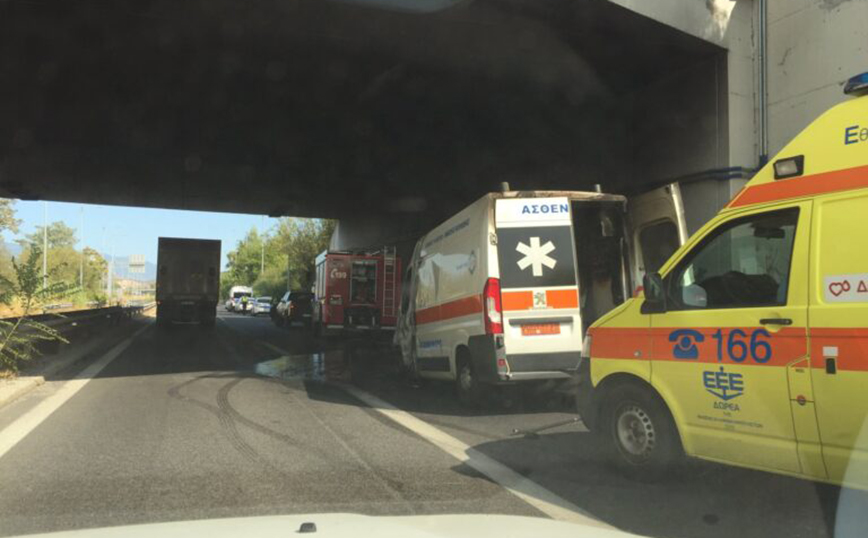 Ένα ασθενοφόρο πήρε φωτιά στο ύψος του κόμβου Βελεστίνου, περίπου πριν από μια ώρα. Τα τρία άτομα που βρίσκονταν μέσα σε αυτό, όλοι μέλη του πληρώματος, είναι καλά στην υγεία τους.
