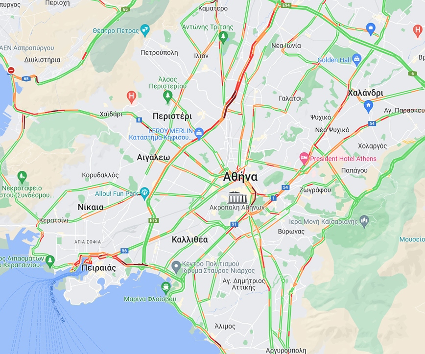 Σύμφωνα με την Τροχαία Αττικής, αυξημένη είναι η κίνηση σε: