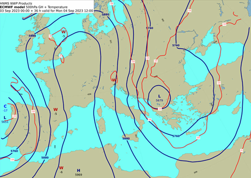 Η τρίημερη επικίνδυνη κακοκαιρία που μόλις έλαβε την ονομασία «Daniel» καταφτάνει στη χώρα μας. Το βαρομετρικό χαμηλό από τα βόρεια Βαλκάνια με ψυχρές ασταθείς αέριες μάζες προβλέπεται να κινηθεί νότια, έως το νότιο Ιόνιο, όπου θα δημιουργήσει και επιφανειακό βαρομετρικό χαμηλό και θα επηρεάσει τις περισσότερες περιοχές της χώρας μας με ισχυρές βροχές και καταιγίδες που θα συνοδεύονται από χαλαζοπτώσεις και μεγάλη συχνότητα κεραυνών, με ενισχυμένους ανέμους και αισθητή πτώση της θερμοκρασίας σύμφωνα με το έκτακτο δελτίο επικίνδυνων φαινομένων που εξέδωσε η ΕΜΥ.