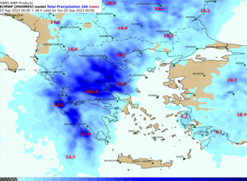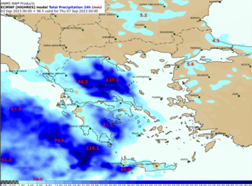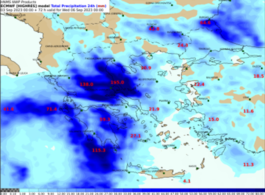 Τα μεγαλύτερα ύψη βροχής θα δεχθούν η Θεσσάλια, οι Σποράδες, και η κεντρική και ανατολική Στερεά η Βόρεια Εύβοια και η Πελοπόνησος.