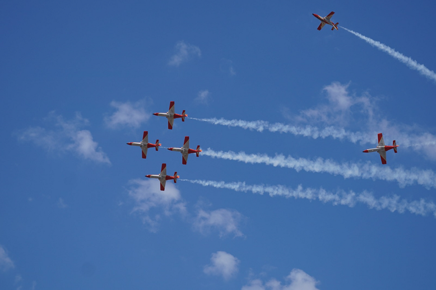 Συγκεκριμένα, οι ομάδες αεροπορικών επιδείξεων «ΖΕΥΣ» και «ΔΑΙΔΑΛΟΣ» οι οποίες πραγματοποίησαν εναέριες επιδείξεις υψηλού βαθμού δυσκολίας.