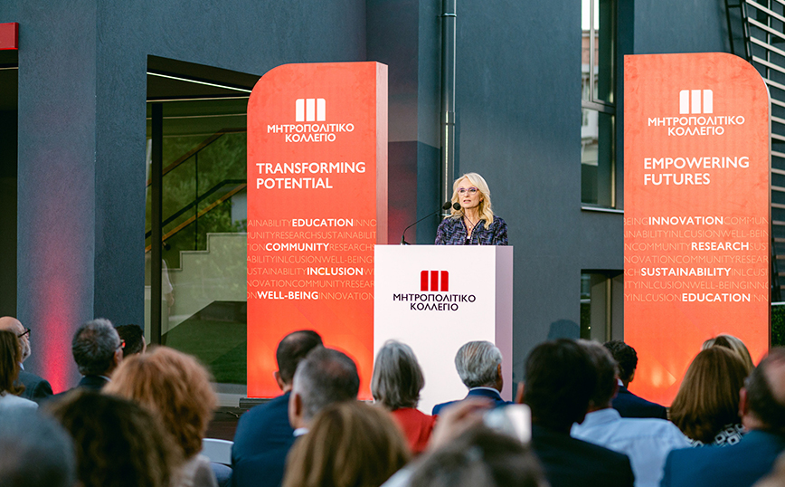 H Διευθύνουσα Σύμβουλος του Εκπαιδευτικού Ομίλου Μητροπολιτικό-ΑΚΜΗ, Καλλιόπη Ροδοπούλου, έδωσε το στίγμα του νέου πρωτοποριακού εγχειρήματος: «Η πρώτη ιδιωτική Πανεπιστημιακή Κλινική στην Αποκατάσταση, αποτελεί έργο που όμοιό του αυτή τη στιγμή δεν υπάρχει σε εκπαιδευτικό ίδρυμα στην Ελλάδα. Παραδίδουμε στους φοιτητές μας, στο επιστημονικό μας προσωπικό αλλά και στην ευρύτερη κοινότητα ένα υπερσύγχρονο κτίριο σχεδιασμένο ειδικά όχι απλά για να εξυπηρετήσει τις αυξημένες ανάγκες μας που προέρχονται από την ανάπτυξη του Μητροπολιτικού Κολλεγίου, αλλά να προσφέρει την πιο πλούσια εμπειρία στους φοιτητές μας με την αξιοποίηση καινοτόμων εκπαιδευτικών μεθόδων, να εμπνεύσει όλους τους διδάσκοντες, να εξασφαλίσει εργασιακές συνθήκες υψηλής ποιότητας στα στελέχη μας». Αναφερόμενη στη δυναμική πορεία του Ομίλου και του Μητροπολιτικού Κολλεγίου δήλωσε: «Από την αρχή της πορείας μας, είμαστε στο πλευρό κάθε φοιτητή, προσφέροντας σύγχρονα πανεπιστημιακά προγράμματα, έχοντας συνεισφέρει κομβικά στην ιδιωτική Τριτοβάθμια Εκπαίδευση της χώρας. Δημιουργήσαμε ένα εκπαιδευτικό μοντέλο που «δοκιμάζεται» με επιτυχία στην αγορά πέντε δεκαετίες με την επιτυχημένη δράση των χιλιάδων αποφοίτων του». Η Διευθύνουσα Σύμβουλος του Ομίλου ολοκλήρωσε την ομιλία της με μία είδηση για τα εκπαιδευτικά τεκταινόμενα και το Μητροπολιτικό Κολλέγιο: «Σήμερα θέλω να μοιραστώ μαζί σας μία δέσμευση. Το Μητροπολιτικό Κολλέγιο θα είναι το πρώτο Κολλέγιο που θα λάβει άδεια Ιδιωτικού Πανεπιστημίου στην Ελλάδα».