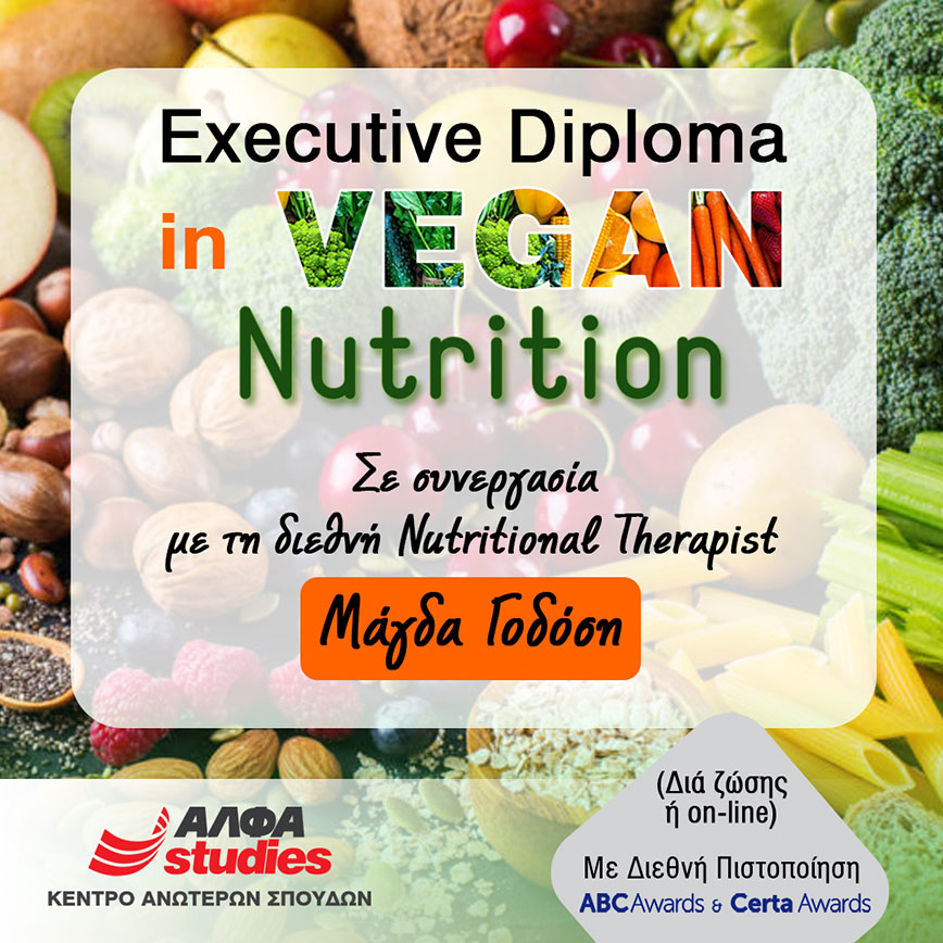Επίλεξε σήμερα το Executive Diploma in Vegan Nutrition και ζήσε την… Advanced επαγγελματική εξειδίκευση αποκλειστικά στο AΛΦΑ studies, με: