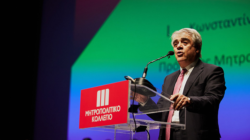 Στον χαιρετισμό του ο Πρόεδρος του Εκπαιδευτικού Ομίλου Μητροπολιτικό-ΑΚΜΗ, Κωνσταντίνος Ροδόπουλος, ανέφερε: «Με μεγάλη συγκίνηση βρίσκομαι απόψε ανάμεσά σας, για να γιορτάσουμε μαζί σας την ολοκλήρωση του πρώτου μεγάλου κεφαλαίου της ζωής σας. Αισθάνομαι υπερήφανος που κάθε χρόνο, η οικογένεια του Μητροπολιτικού Κολλεγίου μεγαλώνει, προσθέτοντας στο δυναμικό της χώρας και της κοινωνίας μας τη νέα γενιά επαγγελματιών οι οποίοι πέραν της αρτιότητας των γνώσεων τους, χαρακτηρίζονται από αξίες όπως η ακεραιότητα, το ήθος, η αριστεία, αλλά και το πάθος για προσωπική εξέλιξη. Εύχομαι αυτές οι αξίες να σας ακολουθούν σε όλη σας τη ζωή και να σας βοηθούν να ανταπεξέλθετε στον απαιτητικό και ολοένα και ταχύτερα μεταβαλλόμενο κόσμο».