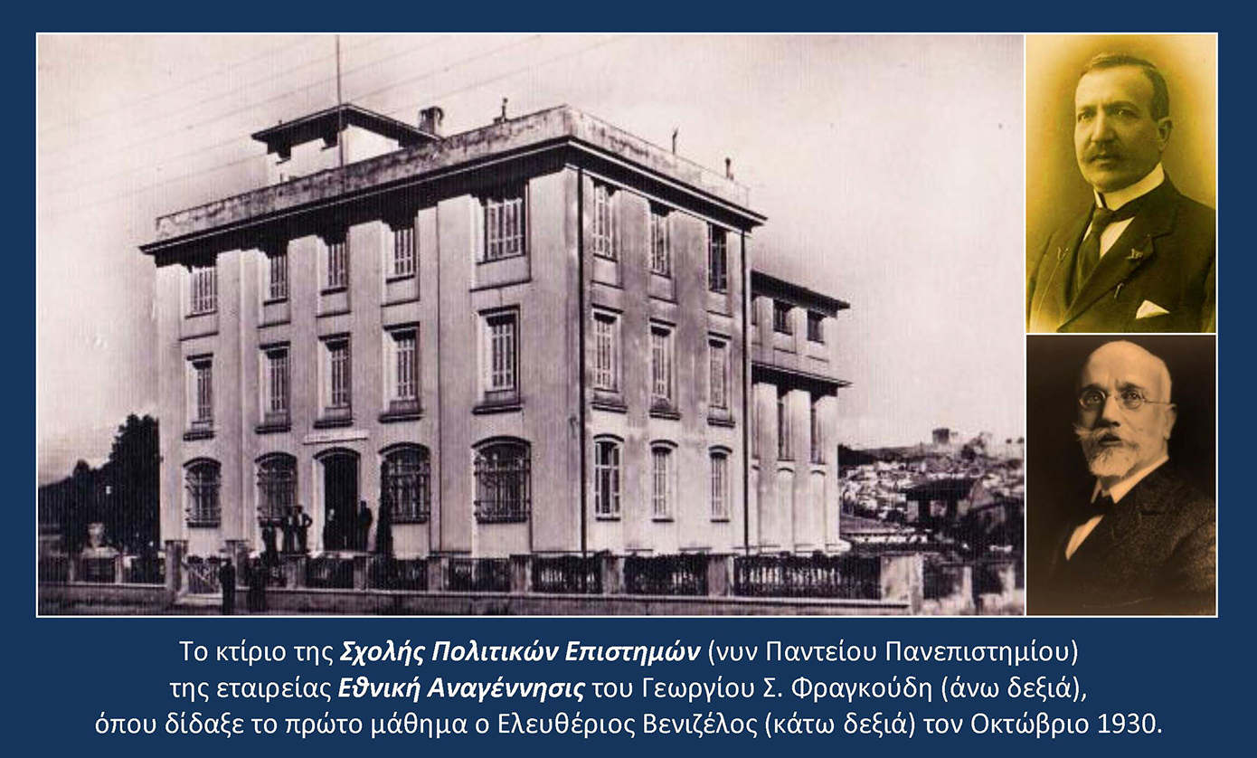 - «Πάντειος Σχολή Πολιτικών Επιστημών» (νυν Πάντειον Πανεπιστήμιο): το πρώτο μονοθεματικό πανεπιστήμιο στην Ελλάδα, το οποίο ιδρύθηκε από την ιδιωτική εταιρεία «Εκπαιδευτική Αναγέννησις» του Γεωργίου Σ. Φραγκούδη με έτος ιδρύσεώς της το 1924 (πριν 100 χρόνια)